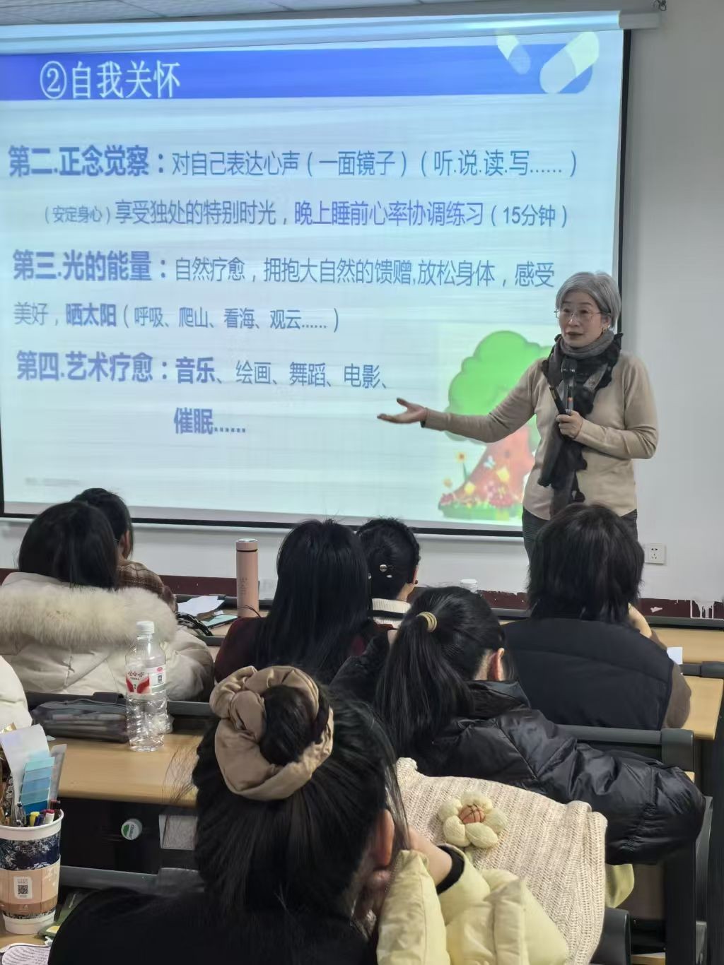 本次課程特別邀請國家二級心理咨詢師、中國生命關懷協會婚姻家庭專委會委員、遵義市家庭教育學會副理事長蔣萍老師擔任主講人。授課過程中,蔣萍老師緊扣醫務工作者的職業特性,從壓力產生的根源切入,結合生動鮮活的案例與專業的心理學知識,深入淺出地講解了情緒識別、情緒釋放的實用技巧。她引導新員工們正視工作與生活中的壓力,學習如何自我關懷、調節情緒,同時圍繞“救死扶傷的職業價值感”與“職業意義的深層理解”展開分享,鼓勵大家在守護患者健康的道路上,既要懷揣醫者仁心的熱忱,也要學會為自己的心靈“充電續航”。